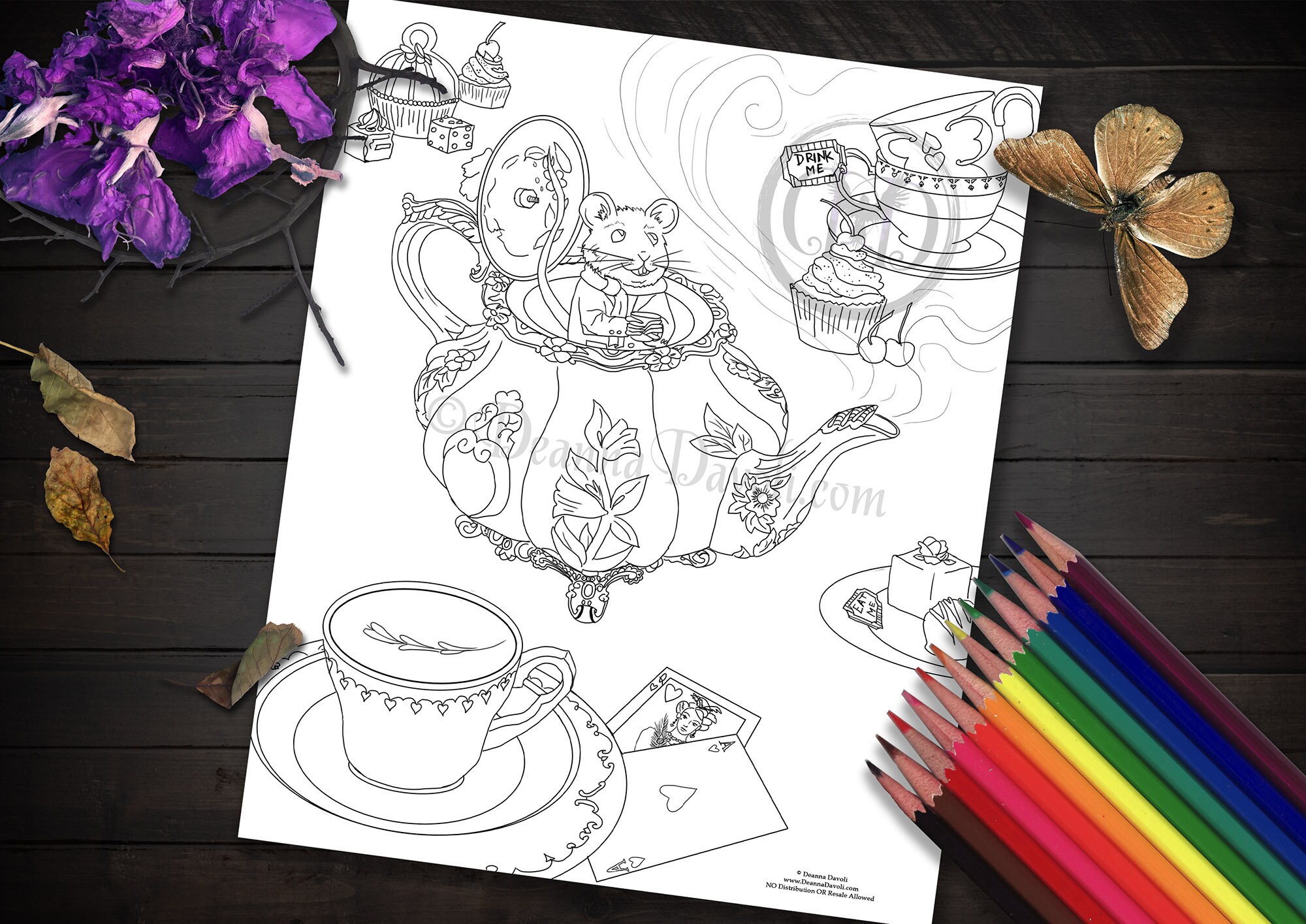 Alice In Wonderland Coloring Page Dormouse Coloring Page Etsy Sweden